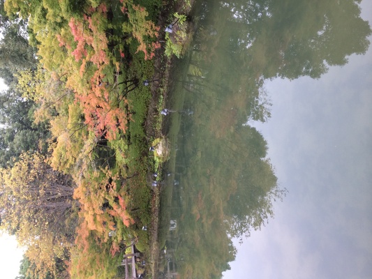 少しずつ紅葉している鏡池。