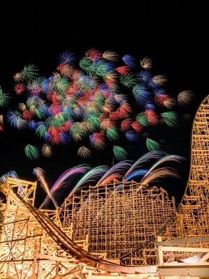 酷暑の中、花火師の皆さんありがとうございます。私たち観るためにただ待っているだけでも汗だくなのに頭がさがります。何枚か撮れた写真でこれが一番好きなので応募させていただきます。本当に感動した美しい華が空一面に咲いたようでした。煙火(花火)は中国語で煙花と書くそうです。感動した美しい火と花をかけて感涙煙花と題名をつけました。