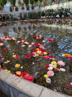 ベゴニアガーデンの水面に浮かぶ花、キラキラ輝いて見え感動しました!出口方面に一度出ましたが、又すぐ見たくなりもう一度戻り目に焼きつけて来ました!
