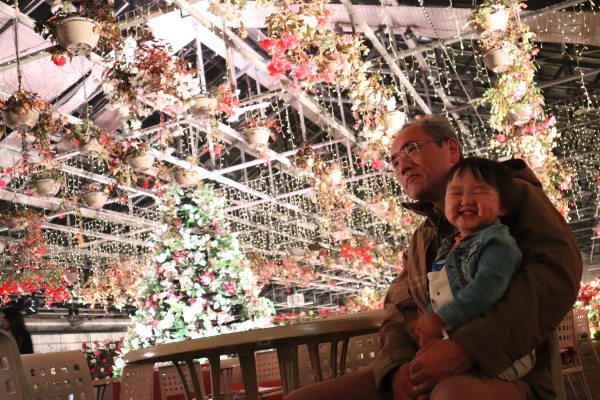 だいすきなじいじのお膝のうえで、ライトアップを楽しみました。