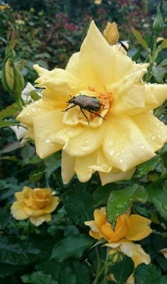 黄色のバラとカナブンと