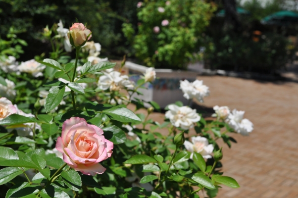 ピンクの薔薇の花言葉「恋の誓い」。白い花の中に一輪、こっそり咲いてしました。かわいい恋心のようでした。