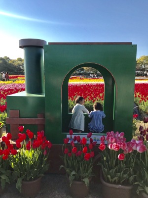 きれいなチューリップと楽しそうな子供達の姿に癒される一枚です