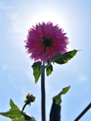 月食ならぬ、ダリヤの大輪で太陽を隠してみました。