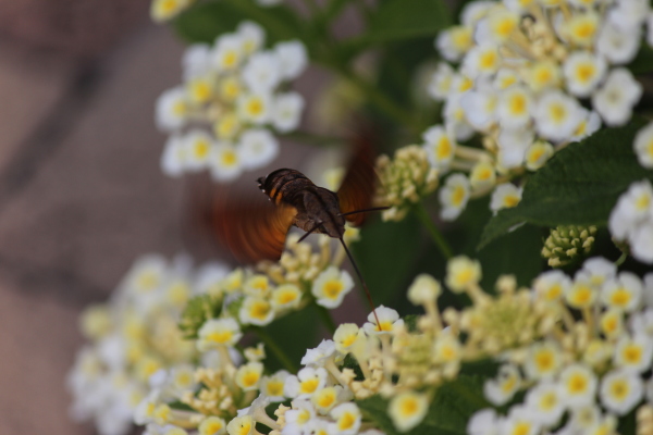 花を撮っていたときにちょうどハチドリが来たため、ハチドリが食事している様子を写しました。すぐ移動してしまうので、撮るのが大変でした。