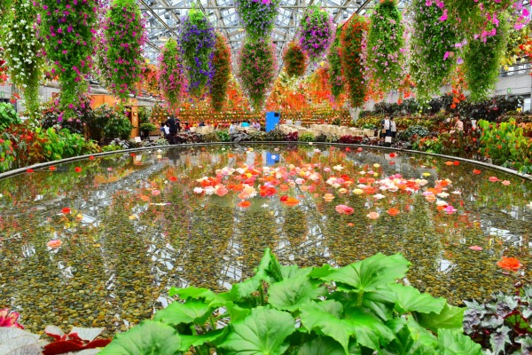 大きな池にはベゴニアがたくさん浮かんでおり、とても綺麗です。