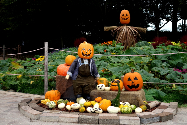 農夫が収穫した南瓜を自慢そうに並べている感じが