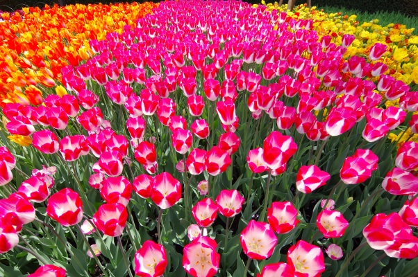 満開のチューリップを広角レンズで上から撮影しました。