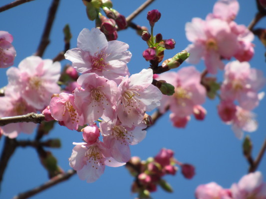 園内にぽつりぽつりと咲き始めた河津桜に春の訪れを感じました。