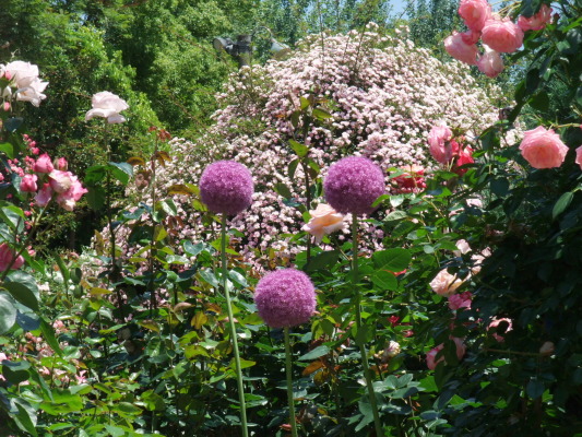 沢山のバラたちの中で一種独特の雰囲気を持ったネギ坊主の様な花がとても印象的でした
