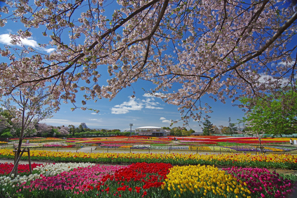 桜もチューリップも満開。お天気も最高で麗らかな春を存分に満喫出来た一日でした。花ひろばの北東の端で撮りました。