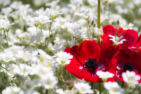 白い花の中にぽつんと咲く紅い花は、他の赤より綺麗に見えました。