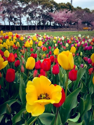河津桜が満開の頃、チューリップが咲き始めていました。あったかくなってきて、春の訪れを感じます。