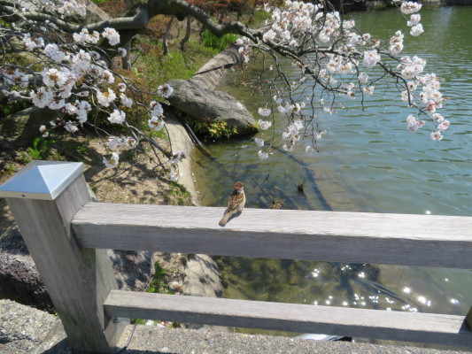 桜と池のほとりの橋の上に、偶然出会いましたこのショット。
