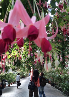 色とりどりのフクシアに迎えられて…