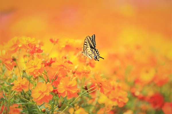 キバナコスモスとアゲハ