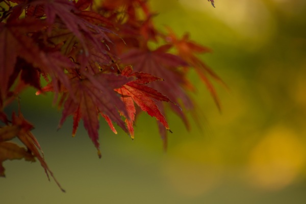 少しずつ秋の色に染まる紅葉と背景の午後の光が当たる池の色が美しく、秋の色を感じさせてくれていました。