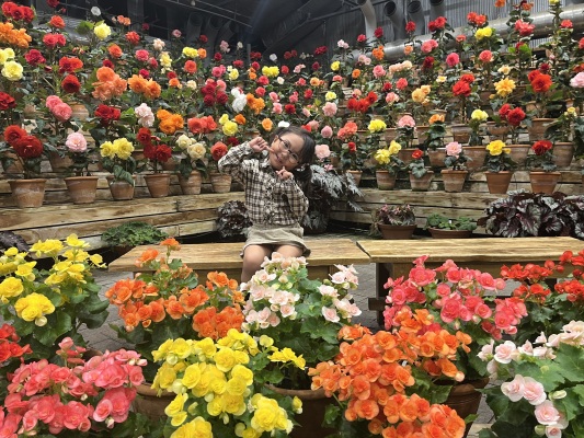 初めてのベゴニアガーデン。たくさんのお花に目をキラキラさせていました。