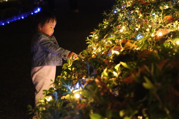 歩けるようになって初めてのイルミネーション、きらきらのそばに行ってじっくり見ていました。