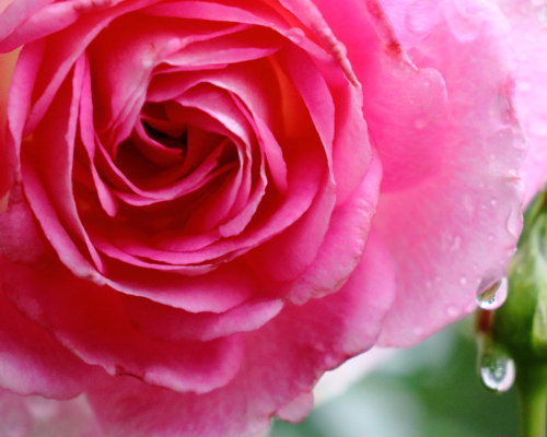 雨の中輝くバラ大輪とそっと寄添うつぼみに出会えました。 雨の雫が今にも落ちそう。