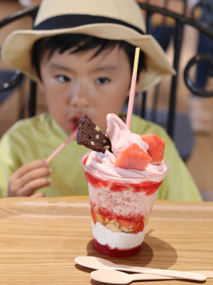 ナガシマファームで食べれるけずりいちごパフェが、ボリューム満点でお気に入りです!