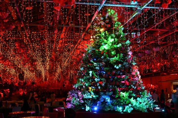 ベゴニアガーデン内で、イルミネーションの色と光が変わる瞬間を狙って撮影した作品です。背景とツリーのカラフルな光がとても素敵です。